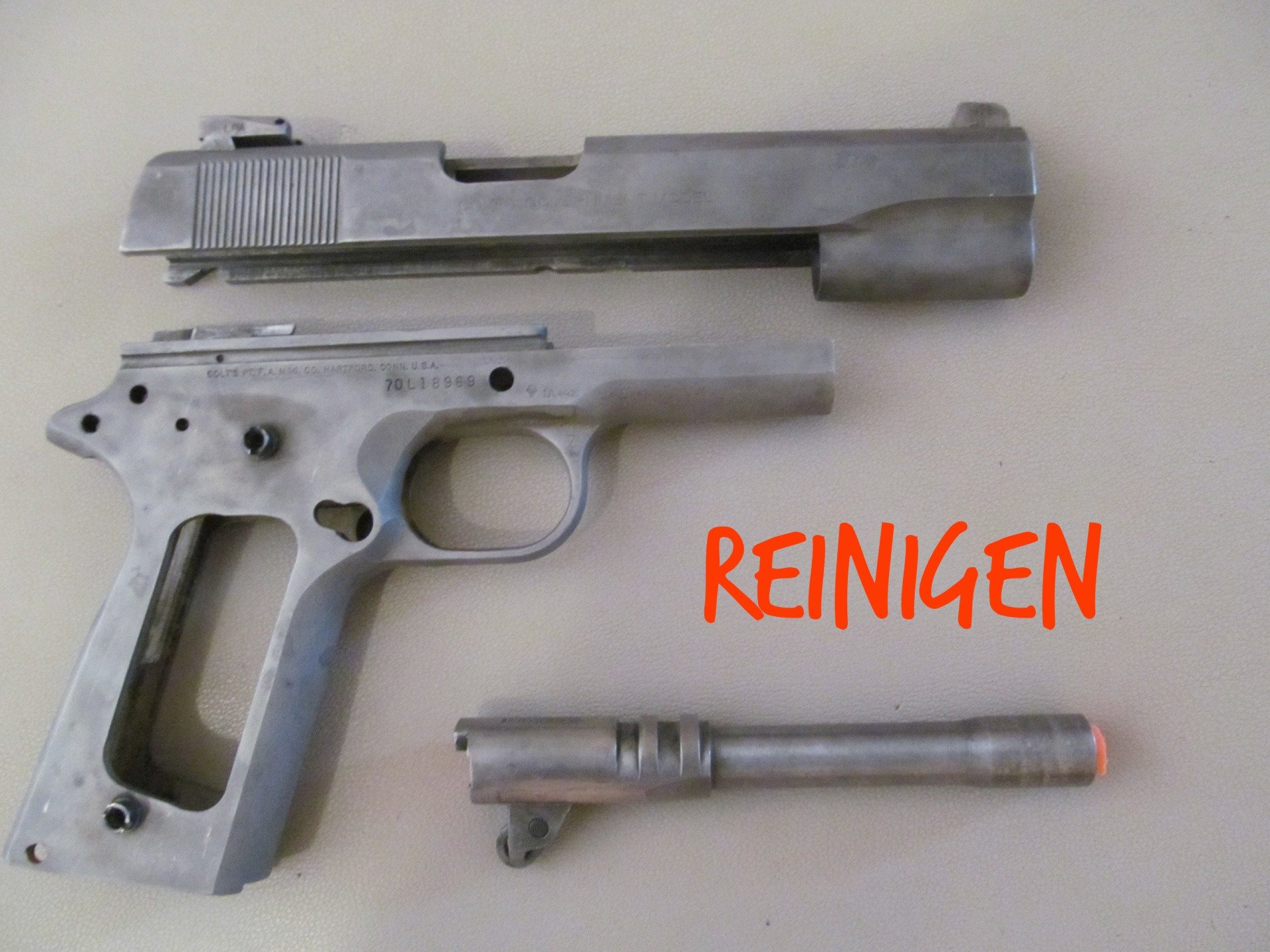 Mechanische Änderungen von Waffenteilen wie Griffstück , Schlitten und Lauf sind Aufgabe eines Büchsenmachers und weden von mir nicht gemacht .